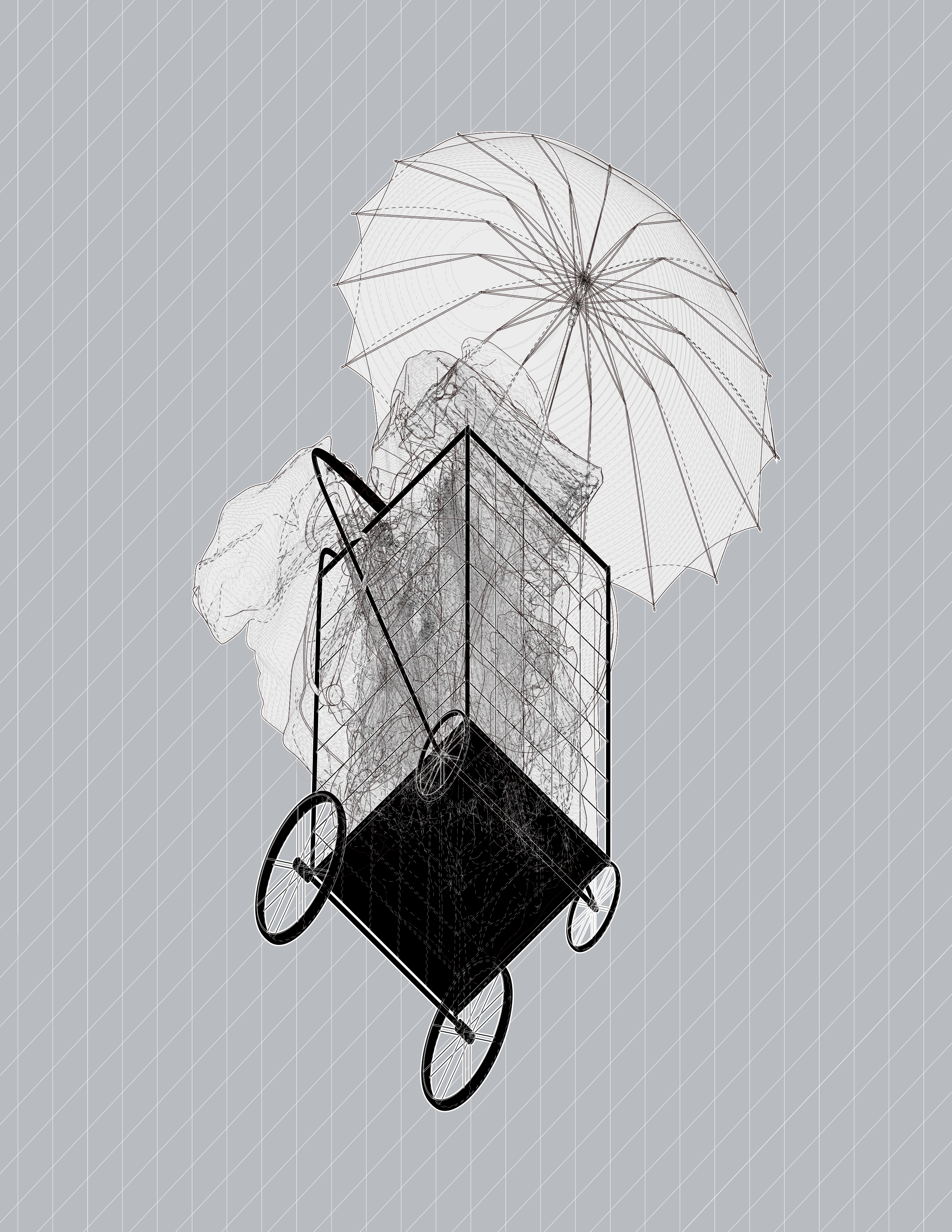Anthony was interviewed about his cart, which acts as ████ home and gives a window into his personality, lifestyle and disability. ███ an obsessive study of cataloguing, analysis, and organization of a spatial object, to see the adjacencies and relations, to to critique the form, but to understand the layout and the sequence through simulation. █████████ taking apart, cataloguing, reusing and then misusing these objects transforms the spatial object into proto-home.