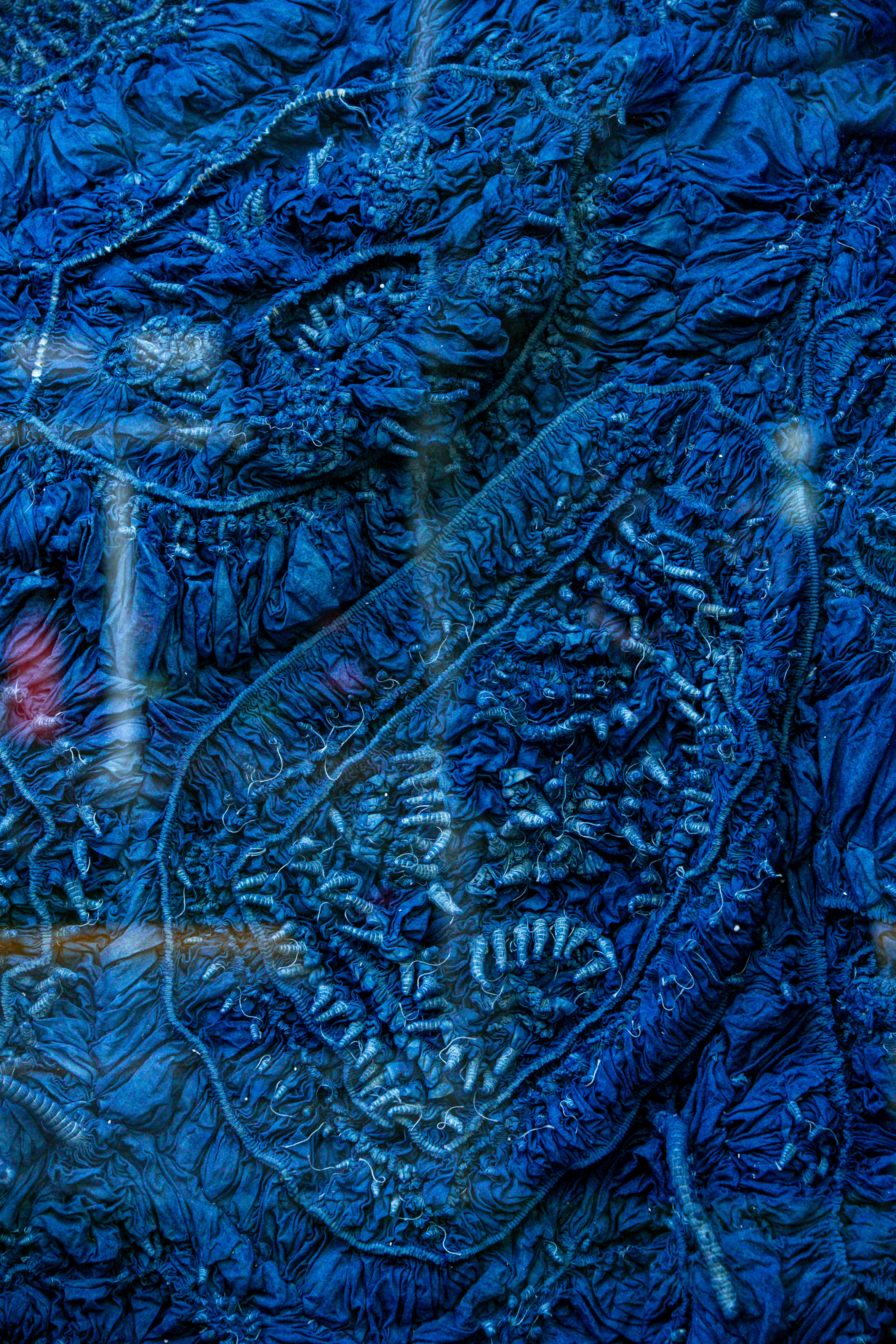 With the release of the Adidas Originals Blue Version Spring Summer 2022 collection, Adidas Originals invited contemporary craft artist Fanglu Lin and phygital architect Nero He to create an art installation titled Bleu for the storefronts of the A3 Adidas store at HKRI Taikoo Hui Shanghai and Sino Ocean Taikoo Li Chengdu. The immersive installation brings together Lin’s traditional handcrafted tie-dye works, derived from techniques of the Bai nationality in China, and He’s digitally animated tie-dye reinterpretations to establish a dialogue between physical craft and digital simulation.